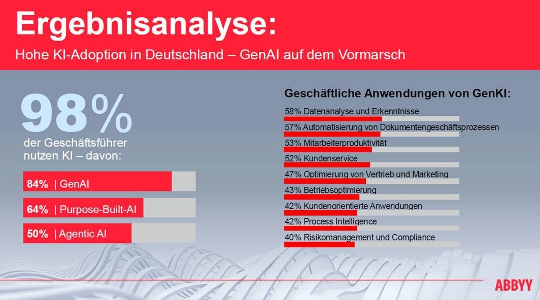 Doch die zentrale Erkenntnis der Studie ist für Dr. Marlene Wolfgruber, Director of Product Marketing für Intelligent Document Processing bei Abbyy, »dass die anfängliche Erwartung, generative KI löse alle Geschäftsprobleme, definitiv nicht erfüllt werden konnte. Zahlreiche Unternehmen räumen ein, dass deutlich mehr KI-Technologien beziehungsweise Gen-KI erforderlich sind, um geschäftskritische Prozesse erfolgreich zu vereinfachen oder zu beschleunigen.«